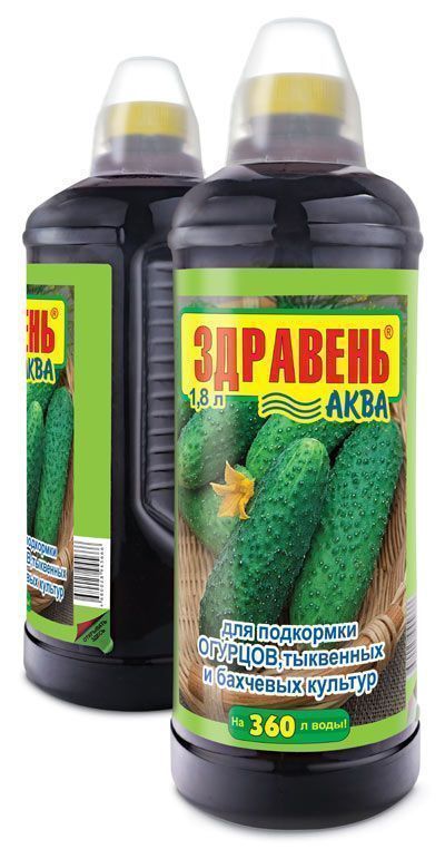 «ЗДРАВЕНЬ-АКВА ОГУРЦЫ» — жидкое комплексное органоминеральное удобрение для корневых и внекорневых подкормок огурцов, тыквенных и бахчевых культур в личных подсобных хозяйствах.